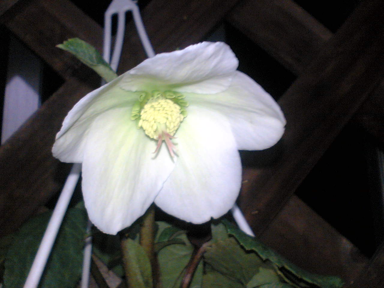 ベランダで季節外れのクリスマスローズが咲きました。